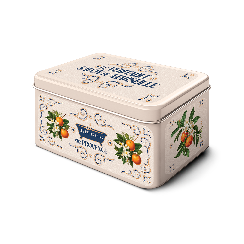 Bring a Provençal touch to your daily life with these authentic soaps and their refined metal box.