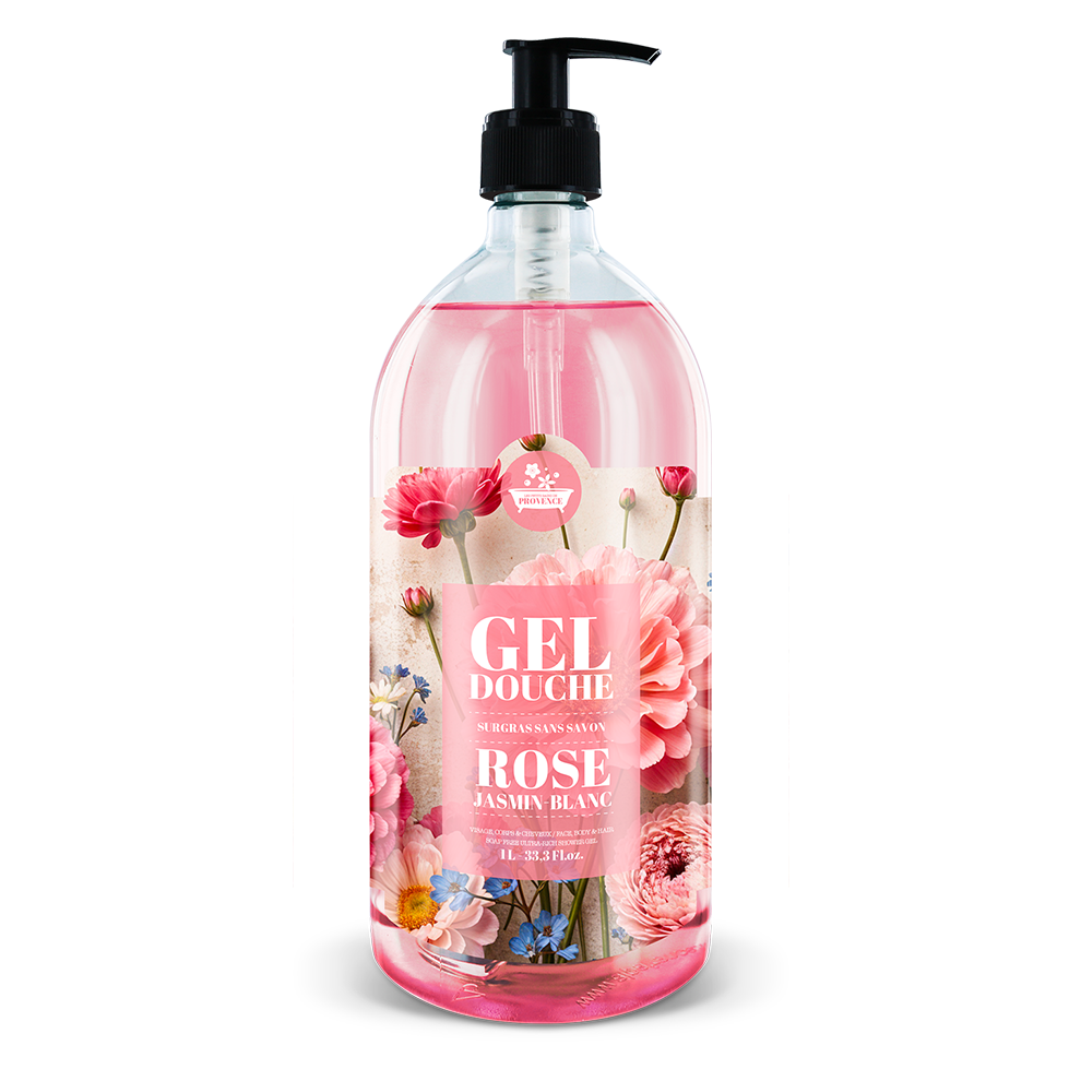 Let yourself be enveloped by the floral tenderness of the 1L Rose Jasmin Blanc Shower Gel , a romantic and refined scent from the Fleurs des Champs limited series.