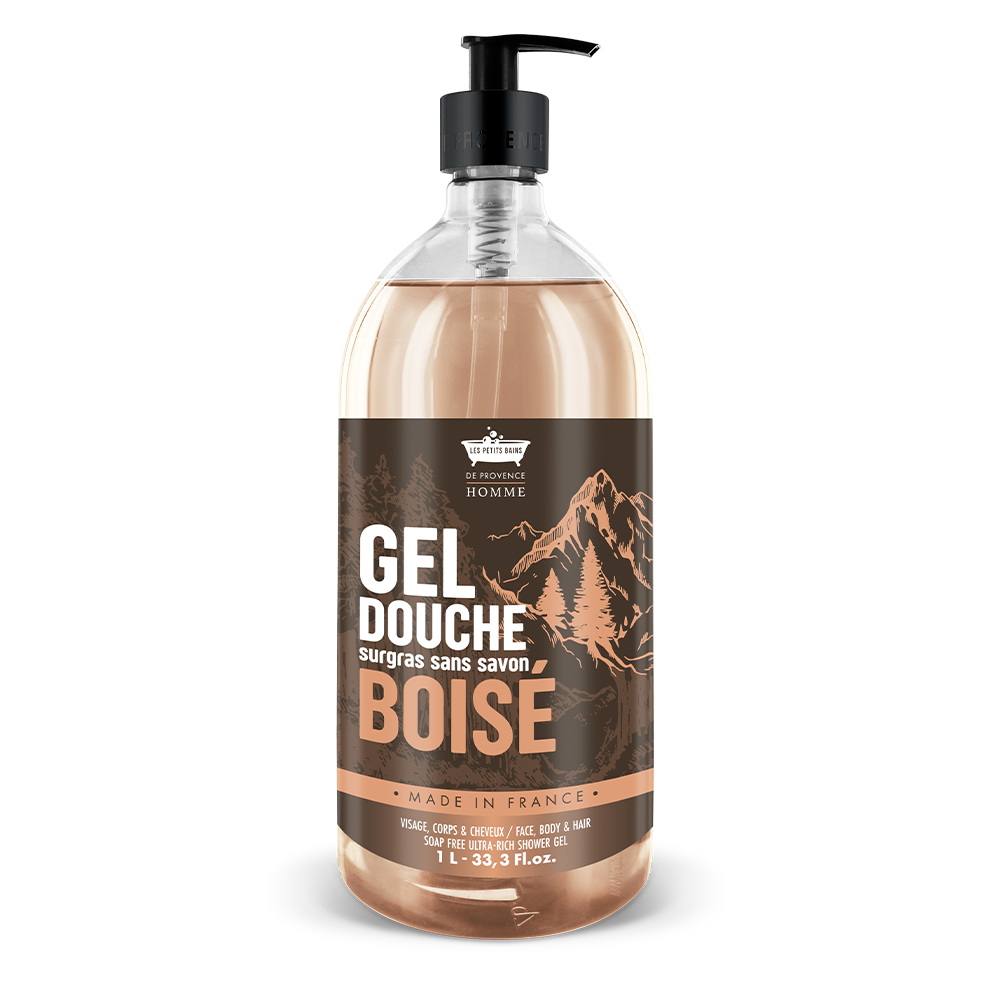 Découvrez le caractère authentique du Gel Douche Homme 1L Boisé Les Petits Bains de Provence. Formulé sans savon et enrichi en glycérine végétale, ce gel douche surgras nettoie en douceur le visage, le corps et les cheveux, tout en respectant l’équilibre naturel de la peau.