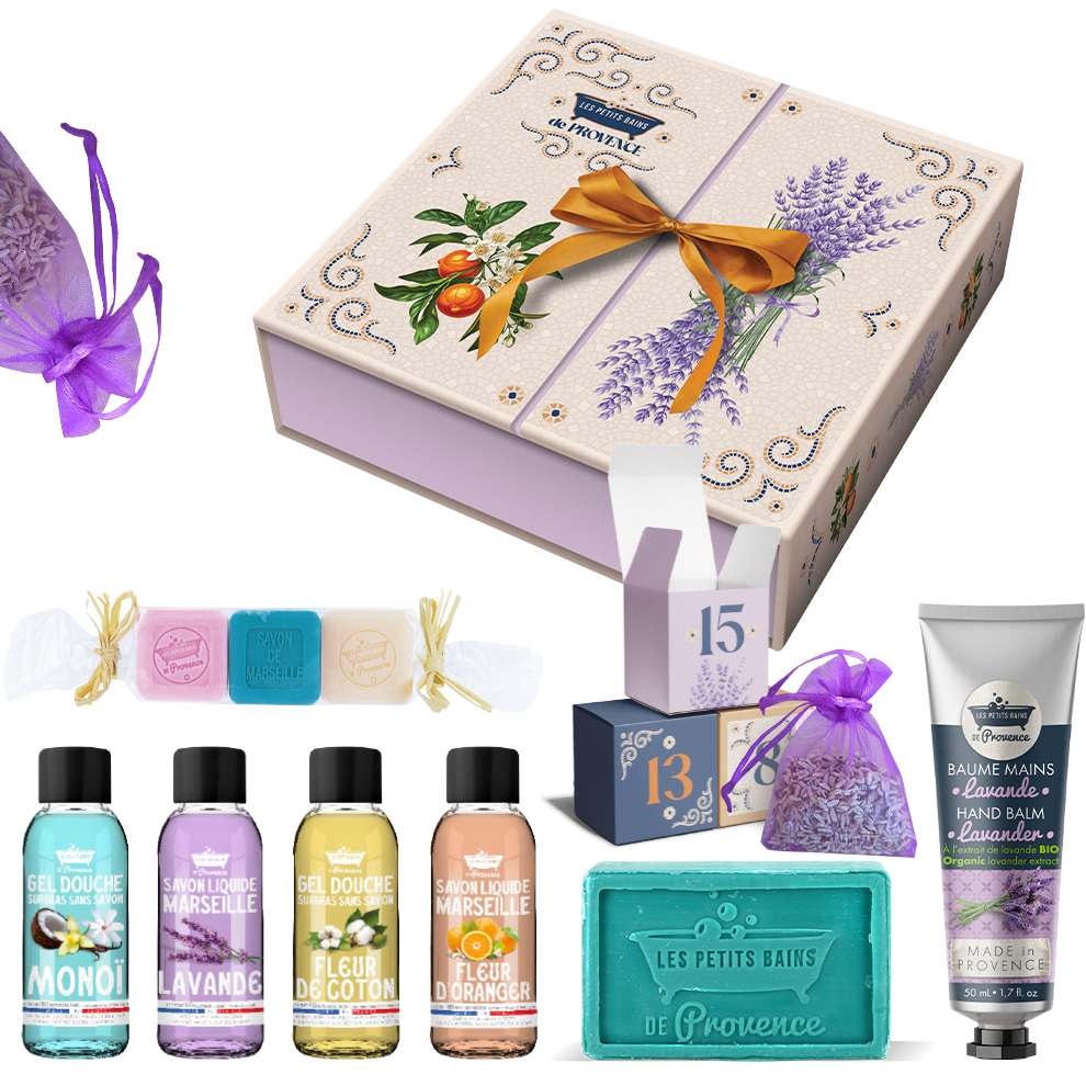 J'ai hâte de découvrir le contenu de ce calendrier . Je cherchais des soins pour le corps avec des produits de provence . Je suis très contente de mon achat .