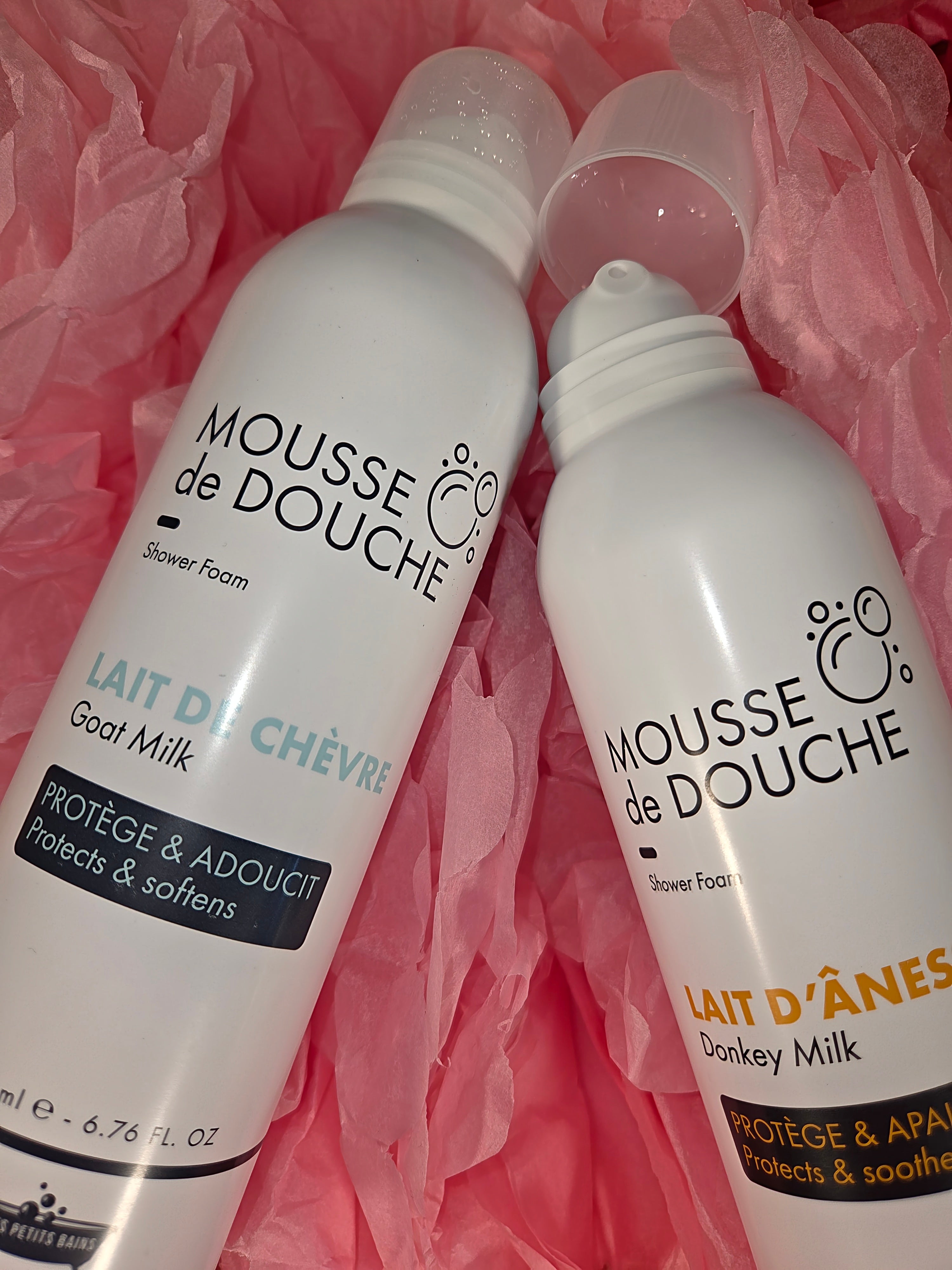La mousse de douche nettoie tout en douceur, hydrate la peau et la respecte, même la plus sensible. Enrichie en lait de chèvre bio ou en lait d’ânesse bio, elle nourrit et apaise, tout en offrant un vrai moment de bien-être grâce à sa texture cocooning.